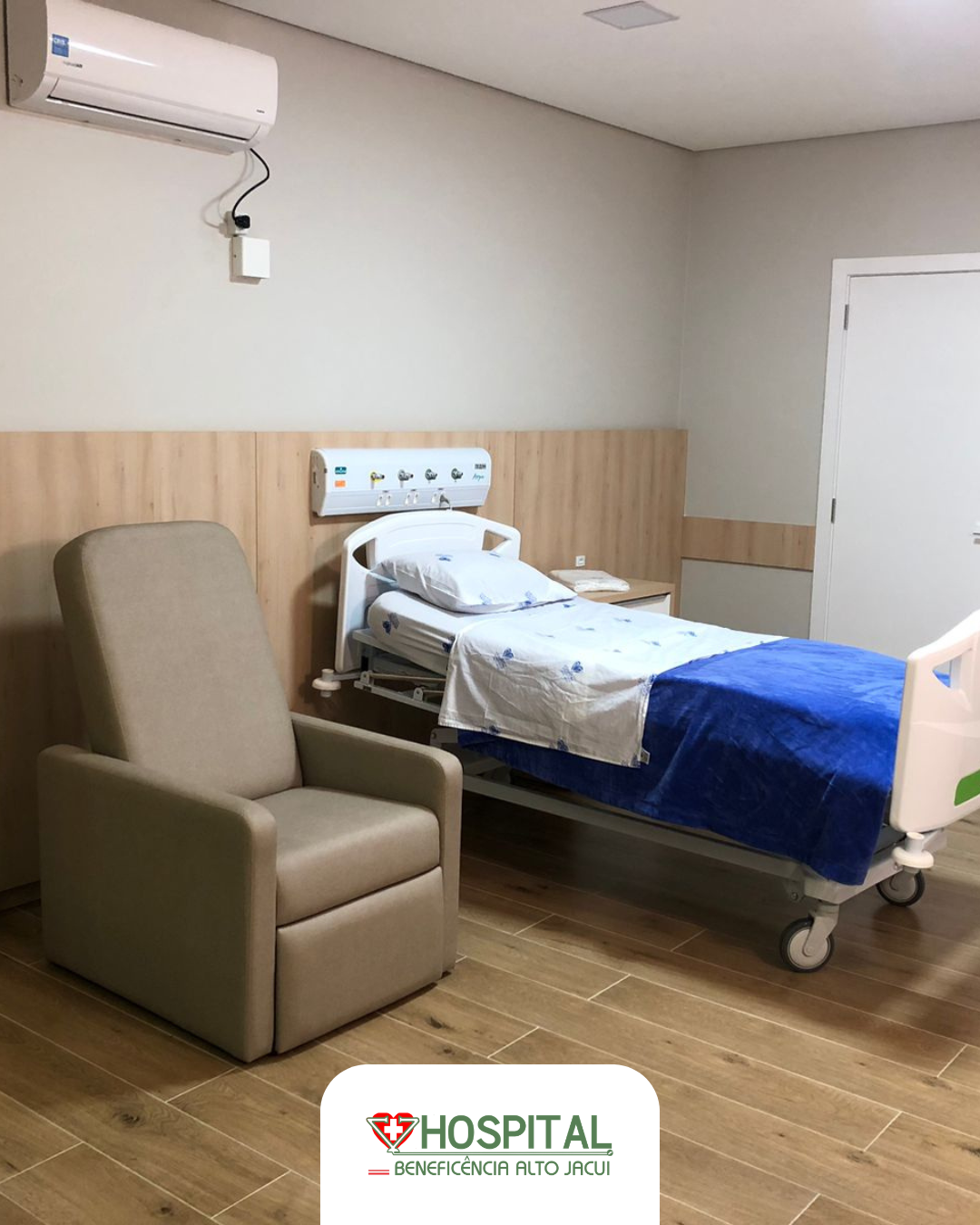 O quarto particular do Hospital Beneficência Alto Jacuí foi planejado para oferecer mais conforto, privacidade e tranquilidade durante o período de internação.